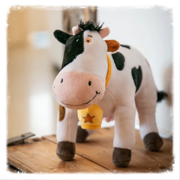 Houten kistjeFien en Teun knuffel Rosa de Koe 30 cm.