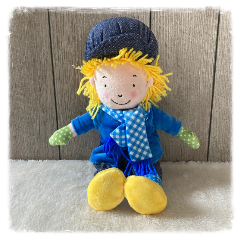 Houten kistjeFien en Teun knuffel Teun winter 30 cm.