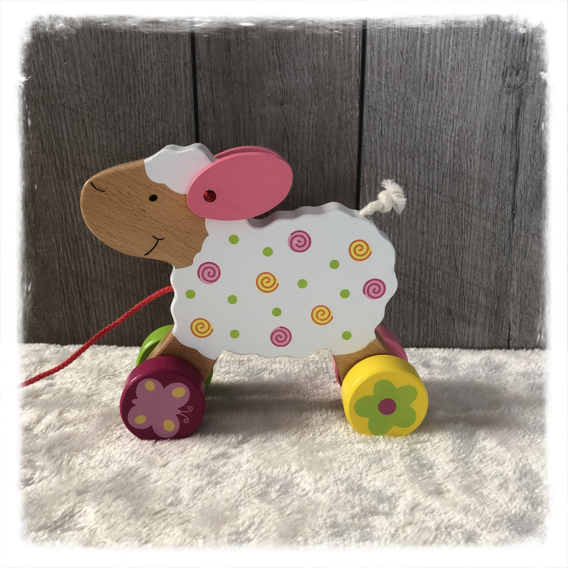 Dit leuke trekvoertuig in de vorm van een schaap is gemaakt van hout. Leuk om mee te nemen voor een wandelingetje.