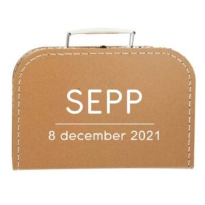 Tijdens het bestellen kun je aangeven wat voor opdruk je op het koffertje wilt. De prijs is inclusief de bedrukking.