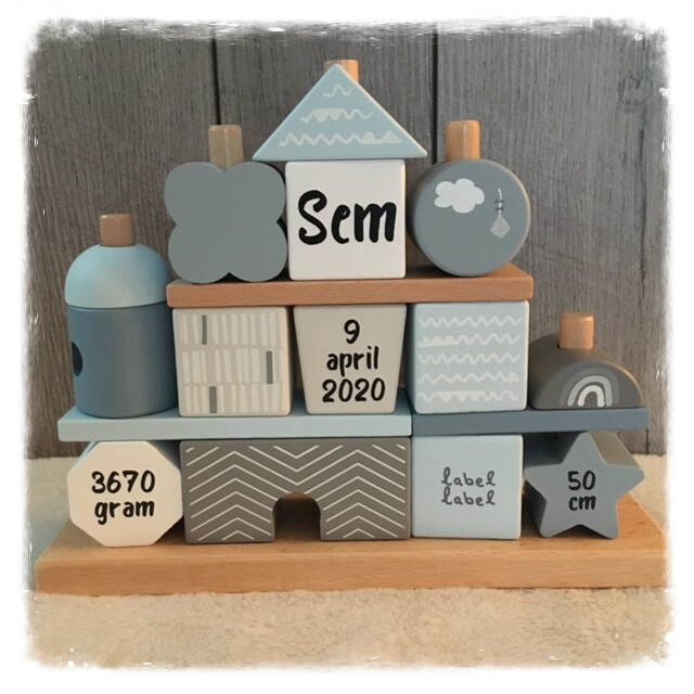 Deze blokken staan superleuk op de babykamer en is met geboortegegevens een uniek cadeau.