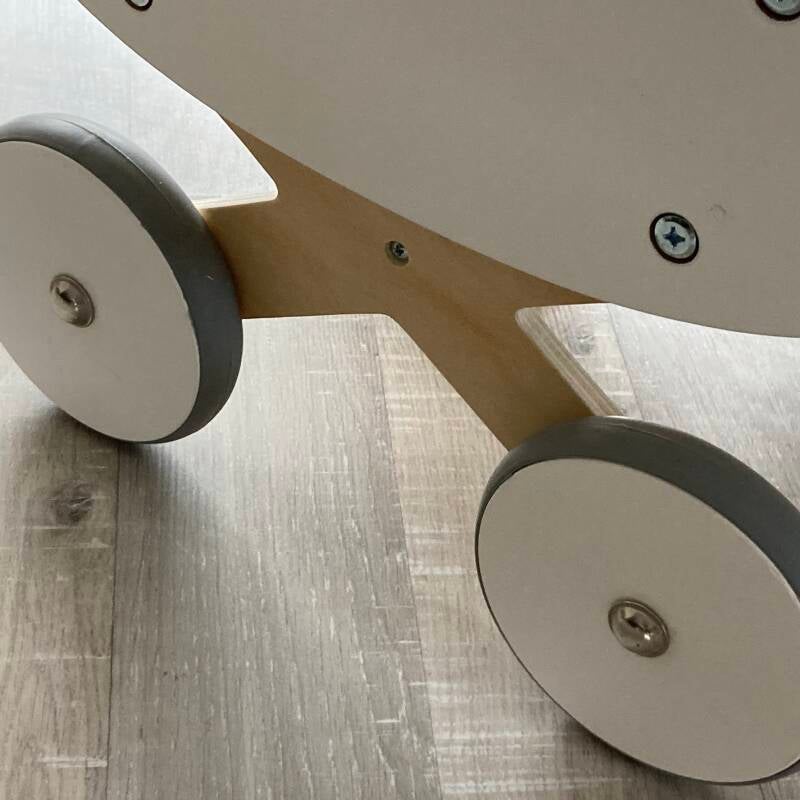 Spelen is niet alleen leuk, het is ook ontzettend belangrijk. Spelenderwijs leren kinderen de wereld kennen. Wat dacht je van dit schattige poppenwagentje. Gekruiste pootjes en een lief gestippeld dekje erin.
